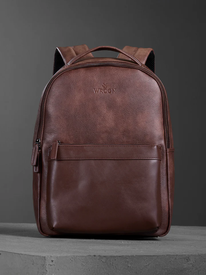 A refined brown PU backpack with a clean silhouette and premium finish. Built for daily carry with padded comfort, multifunction pockets, and laptop space up to 17 inches.